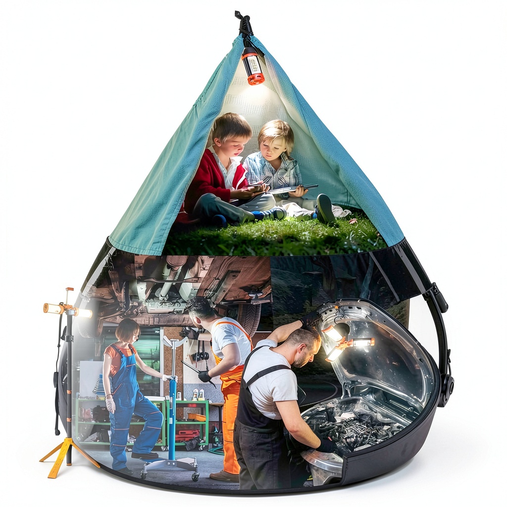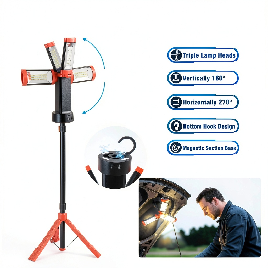This rechargeable work light is ideal for a wide range of environments, including garages, workshops, and outdoor settings like camping sites or construction areas. It serves professionals and DIY enthusiasts who need consistent, adjustable lighting for tasks such as vehicle repairs, home projects, or evening outdoor activities. The tripod stand allows for stable placement on uneven surfaces, making it suitable for events, emergencies, or daily use where hands-free operation is essential.