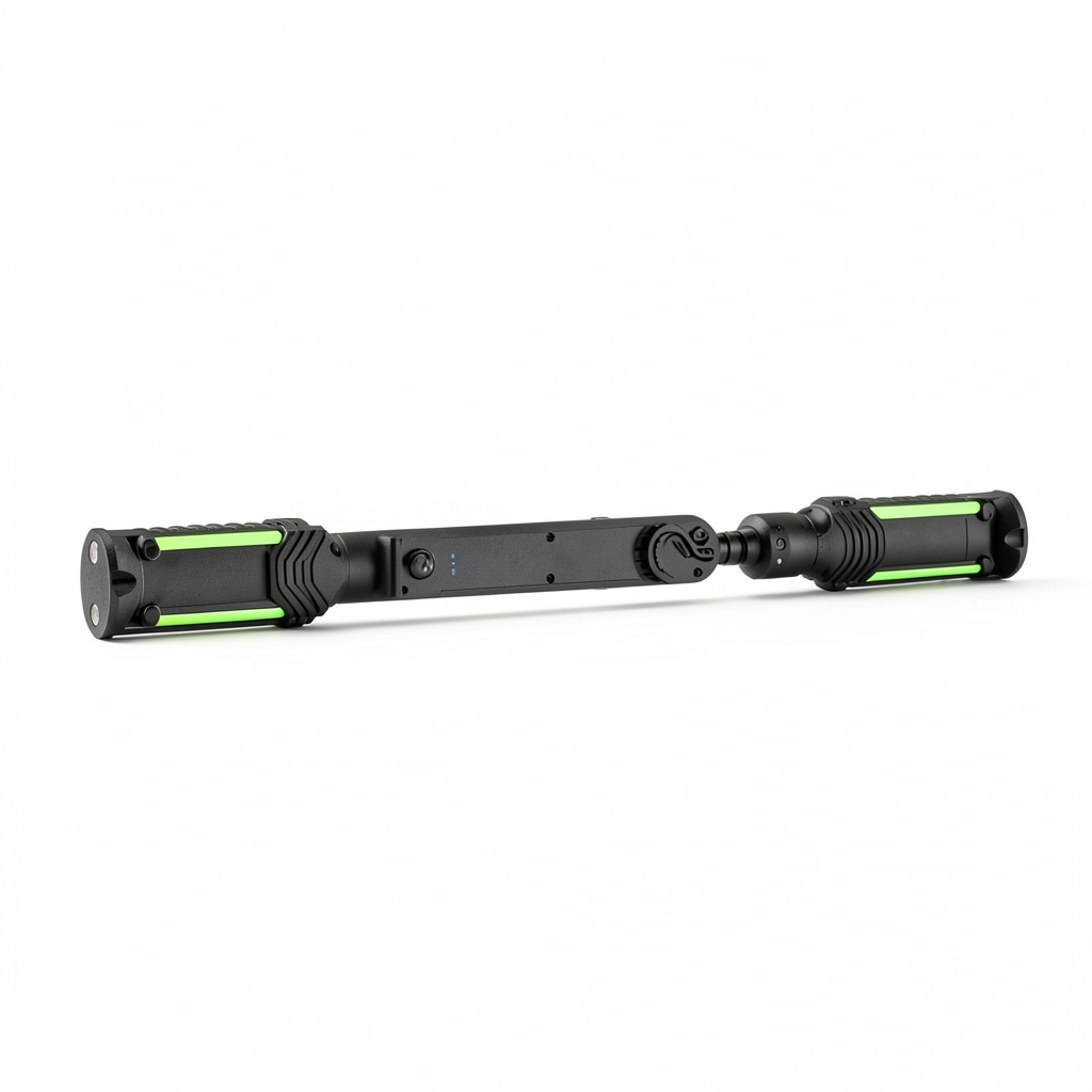 The SYLSTAR magnetic rechargeable LED work light is engineered for professionals and DIY enthusiasts needing reliable, hands-free illumination. Featuring a highly flexible design with 360° horizontal and 330° vertical rotation, it adapts to any workspace. Constructed from tough ABS fluorescent housing with rubber ends for shock resistance and an IPX4 waterproof rating, it withstands harsh conditions. Powered by a 4400mAh built-in battery, it offers up to 4 hours of runtime in high-brightness mode (2400LM) and includes a Type-C charging port for convenience. Dimensions are 2.2 x 2.2 x 27.8 inches, weighing 1.26 pounds, and it comes with two Lithium Ion batteries included.