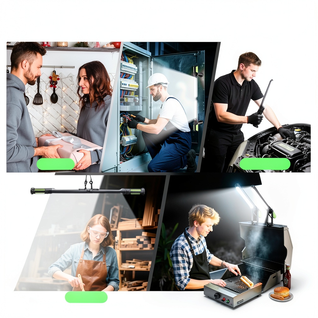 This work light is ideal for automotive repairs, such as underhood inspections, engine diagnostics, and brake work, where magnetic attachment to metal surfaces ensures stability. In workshops, it serves for machinery maintenance, woodworking, or electrical tasks, while construction sites benefit from its durability and red flashing emergency mode for safety. Target users include mechanics, car detailers, construction workers, and home DIYers seeking efficient, portable lighting solutions.